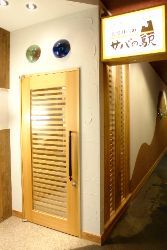 カウンターの端のヒバの背もたれと砂壁に当たる間接光で落ち着きを整えます