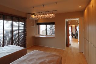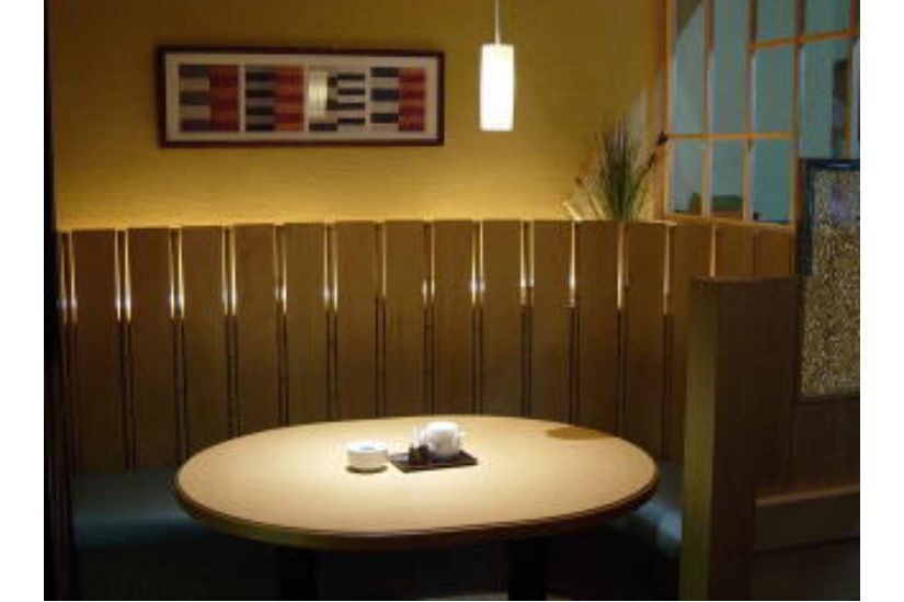 カウンターの端のヒバの背もたれと砂壁に当たる間接光で落ち着きを整えます