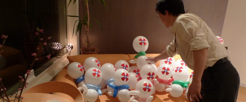 そんな中で個人的に一番の思い出と言えば何と言っても上の写真の・・みんなで集まって、風船でイメルダマ親父のプレゼントを作ったこと。淡路さんなかなか手こずってましたね!膨らませる吐息は膨らむ期待そのままの・子供たちへの「想い」のプレゼントでした。北村さん!素敵なアイデア本当にありがとう!