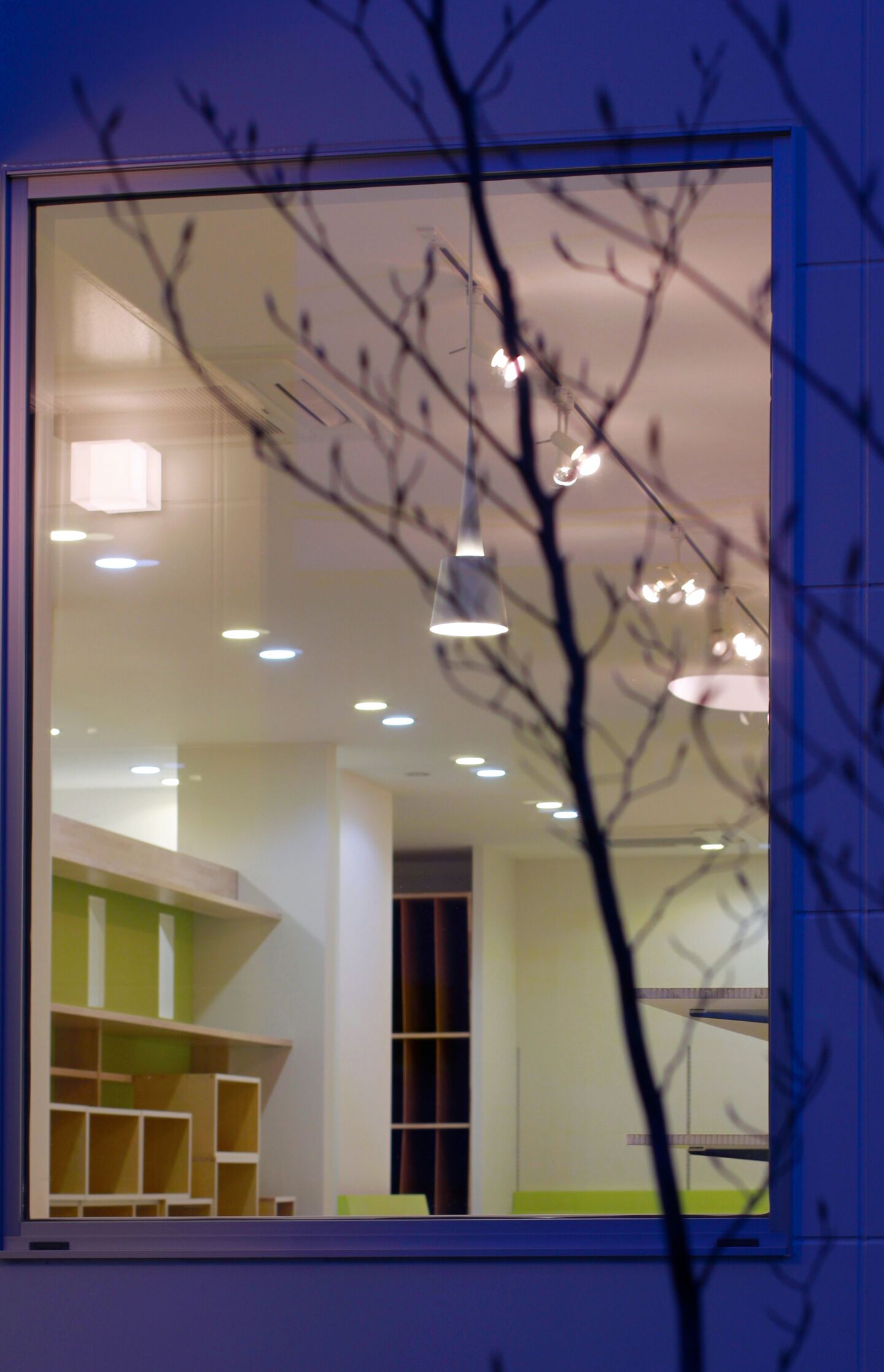 壁仕込みのグラス棚の可変色LEDオンです