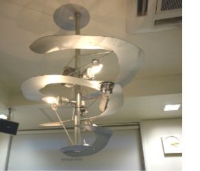 円形の鋸歯から吊り下がるトルネード型照明オブジェです